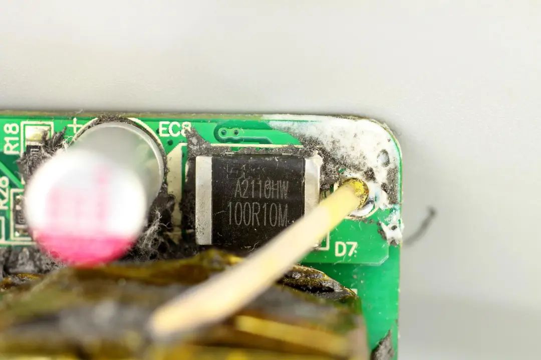 充電器內(nèi)部PCBA模塊采用黃銅散熱片包裹,PCB正面打膠,背面有導(dǎo)熱墊,將熱量傳導(dǎo)至散熱片散發(fā),滿(mǎn)足長(zhǎng)時(shí)間大功率輸出設(shè)計(jì)。初級(jí)濾波電容來(lái)自黃寶石,次級(jí)固態(tài)濾波電容來(lái)自柏瑞凱,整機(jī)用料均為知名品牌。