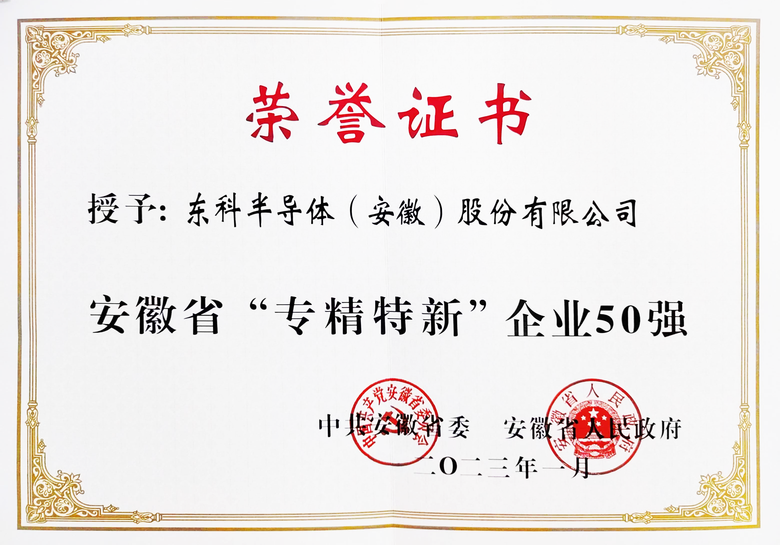 東科半導(dǎo)體榮獲:安徽省“專(zhuān)精特新”企業(yè)50強(qiáng)