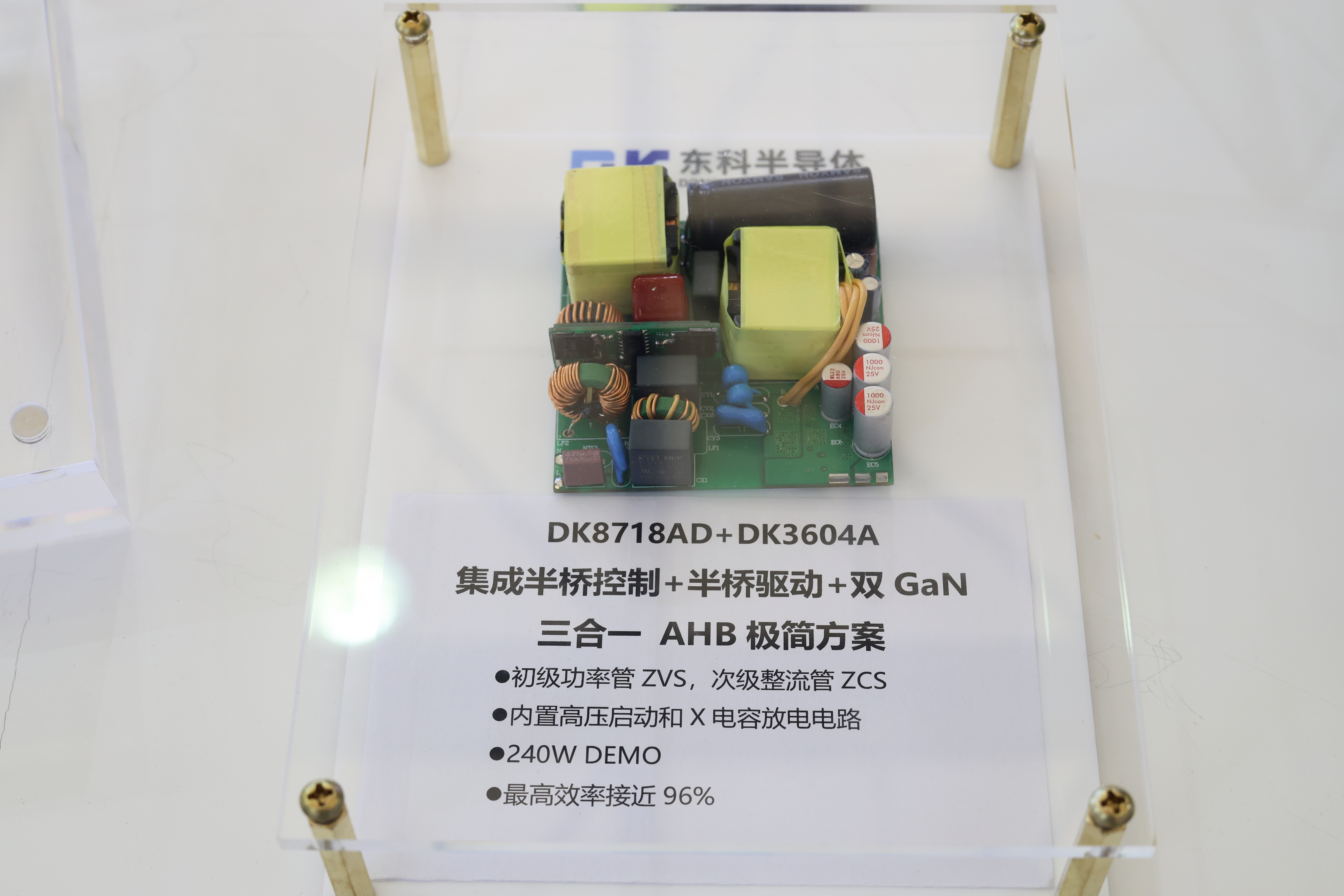 此次重磅展出了東科全新All-in-One全合封氮化鎵AC-DC電源管理芯片(不對(duì)稱(chēng)半橋系列/有源箝位反激系列)。作為市面唯一的All-in-One全合封不對(duì)稱(chēng)半橋解決方案DK87XXAD,有源箝位反激解決方案DK86XXAD。芯片采用三合一設(shè)計(jì),單芯片集成AHB/ACF控制+半橋驅(qū)動(dòng)+半橋GAN器件,實(shí)現(xiàn)了優(yōu)異的總線控制功能,提供卓越的性能和效率。