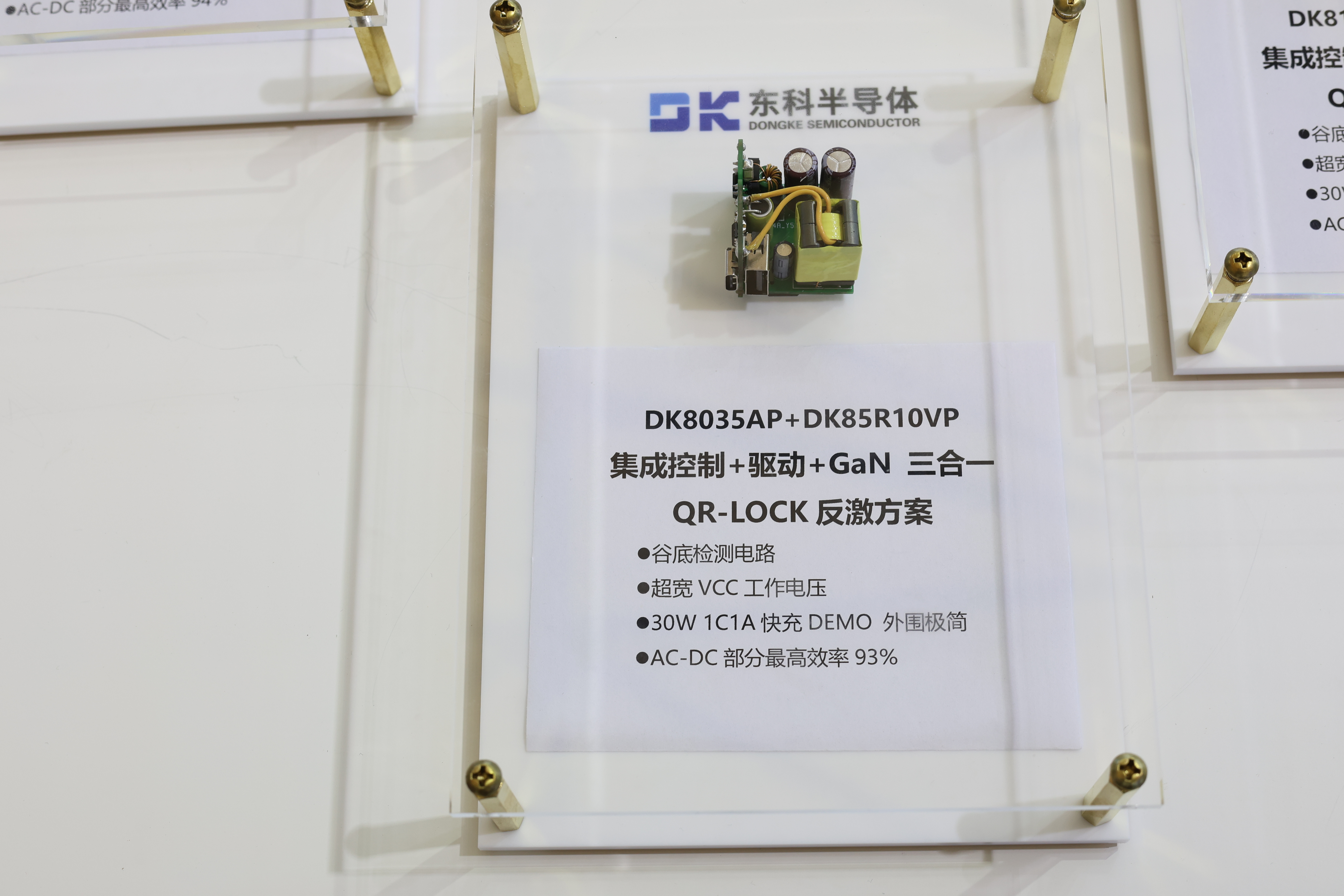 在氮化鎵AC-DC電源管理芯片領(lǐng)域,東科還帶來(lái)了全合封QR-LOCK AC-DC 電源管理芯片DK0XXG/DK80XXAP系列。產(chǎn)品輸出功率覆蓋12-75W。支持250KHz開(kāi)關(guān)頻率,待機(jī)功耗低于50mW,內(nèi)置高低壓輸入功率補(bǔ)償電路。